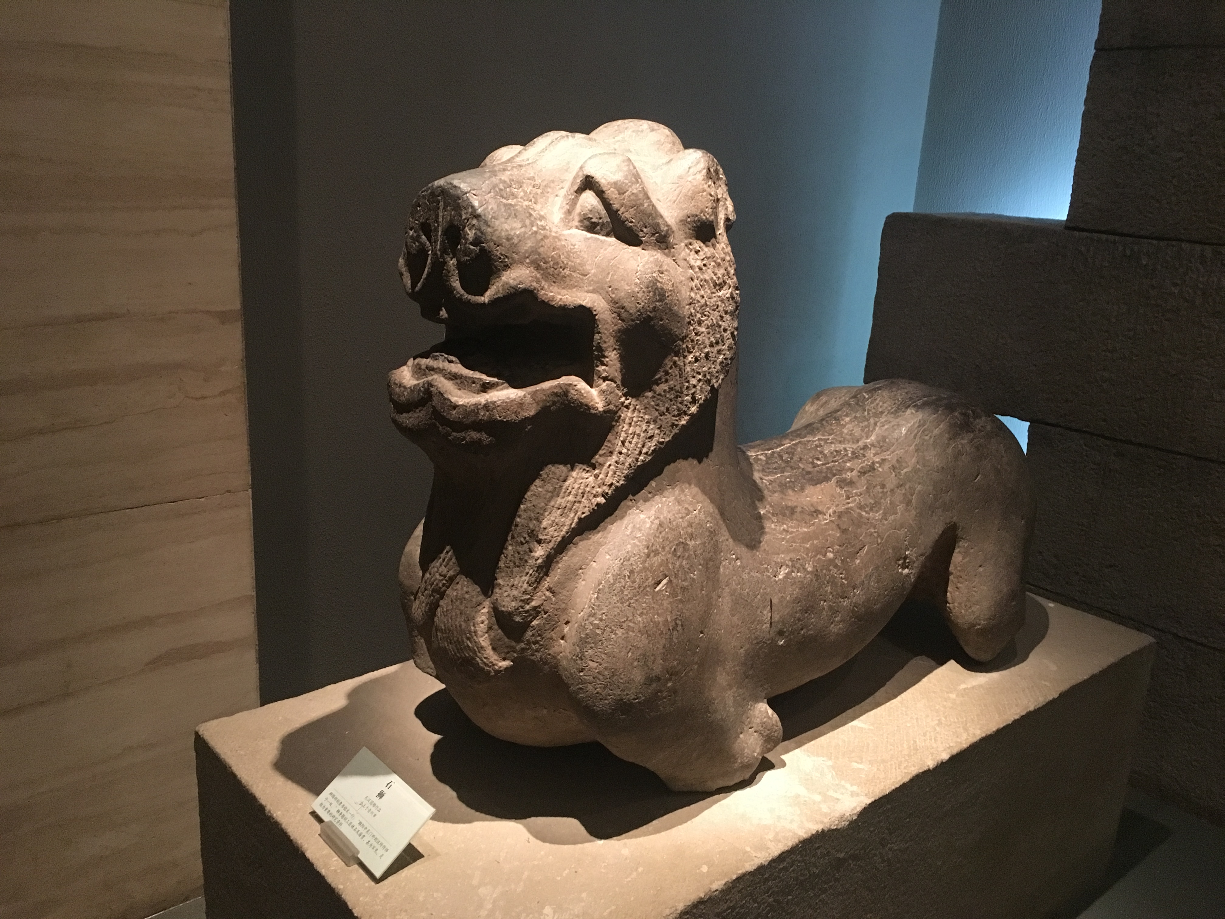 Stone lion, Eastern Han Dynasty (25-220 CE). An inscription on the lion’s neck reads “a pair of lions made by Liu Han outside the central east gate of Luoyang.”
