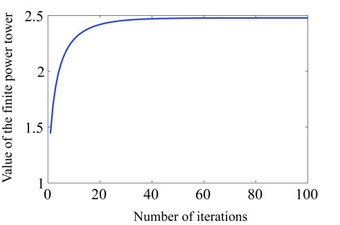 but it usually approaches the non-obvious solution, not the integer one that we would think. In the case of the square root, with N = 2, the infinite power tower takes on the simple value we expected.