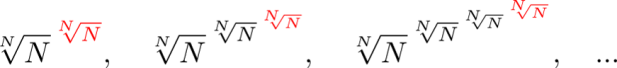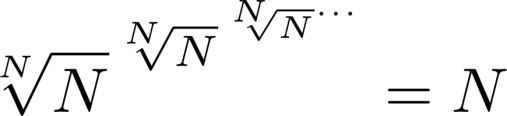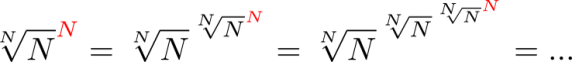 Note the difference with the expression above it: we don’t end with N, but with the Nth root of N, the only thing that appears in our infinite expression. One can calculate this sequence in order numerically, and see if it approaches the expected value N or not.