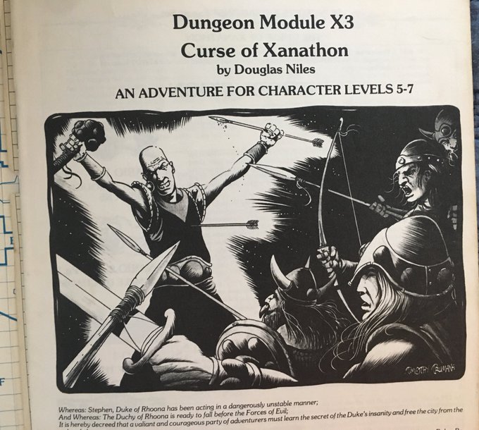 This particular proclamation sets the dwarves on a path to war with Rhoona, while the players learn that the Duke’s madness may be due to a curse… the Curse of Xanathon!!! They must discover the origins of the curse and cure it before the war begins.