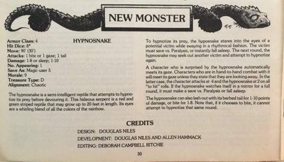 One last fun thing: the module introduced the new monster, the hypno-snake…