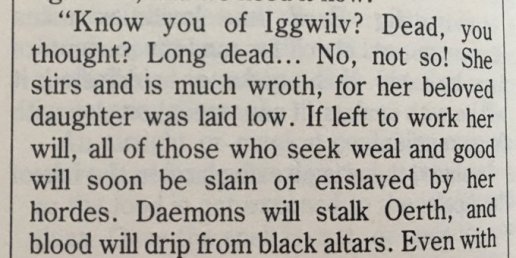 One neat thing I noticed in this adventure: in the intro, it notes the evil Iggwilv is behind the plot, and mentions her slain daughter…