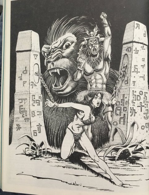 But this isn’t essential to the plot, really. The island is supposed to be a big trap for adventurers; if I were to run it today, I would make the tribe a collected group of centuries of failed adventurers, regressed to a savage insane state to survive.