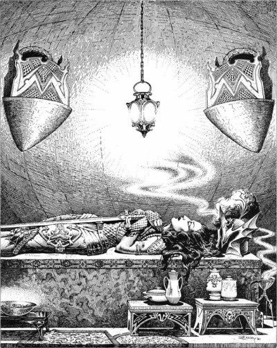 PS as I said, I’ve owned this damn book for over 30 years and only now noticed that the reflection of the sorceress in the mirror is aged!