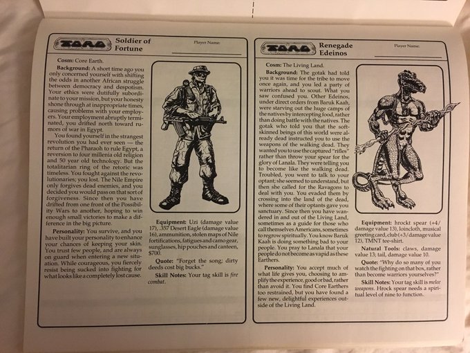 One immediate joy of Torg is that you can play pretty much any sort of character you want, from any of the realities – because of possibility energy, even seemingly mundane people can achieve the impossible and be heroes.