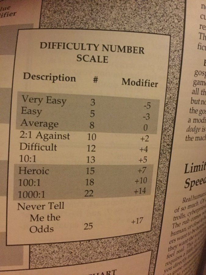 And Torg provided rules to try basically ANYTHING. For some indescribable attempt outside of any obvious rules, a table was provided to give a difficulty level to meet.
