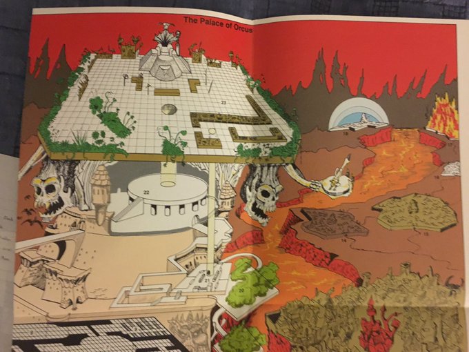 The adventure climax is negotiating Orcus’ palace, and its many traps, to get his wand. The module treats it right, with a lovely full color map, of which I show only a portion.