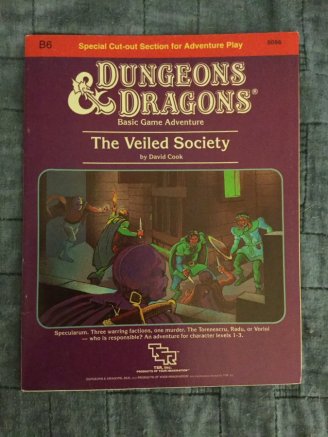 B6: The Veiled Society (1984), by David Cook. After that last epic adventure, it seems wise to go back and look at one on the other end of the experience level!