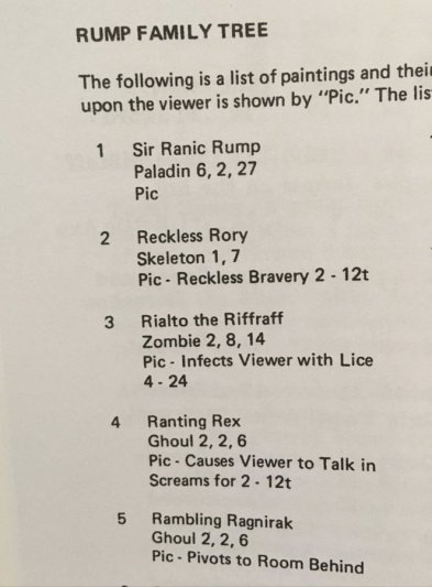 There are some really fun touches. Portraits of the “Rump” family are spread out in the house, often with magical effects. And the undead forms of former family members can be encountered anywhere, to keep players on their toes!