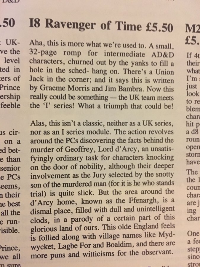 And they weren’t any nicer to TSR UK publications. In fact, of the 5 modules reviewed in GW4, NONE of them were given a particularly nice review!