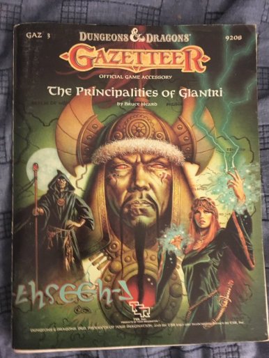 GAZ3, The Principalities of Glantri (1987), by Bruce Heard. I knew about all the Gazetteers when they first came out, but I only decided to read one recently, when I started these explorations of classic D&D!