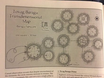 Entering the portals after Iuz, the PCs find that Vecna’s disciples have stabilized some of them, making a temple out of various circles in various demiplanes. They must negotiate this maze, getting past Vecna and Iuz cultists along the way.