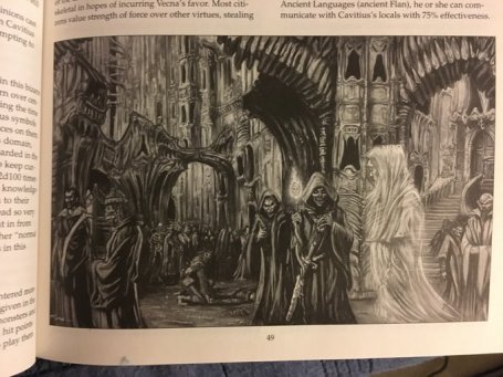 The players pursue Iuz into Vecna’s home in Ravenloft: the Citadel Cavitus, a skull-shaped city inhabited by the most powerful undead as well as living humans trapped and struggling to eke out a pathetic existence.