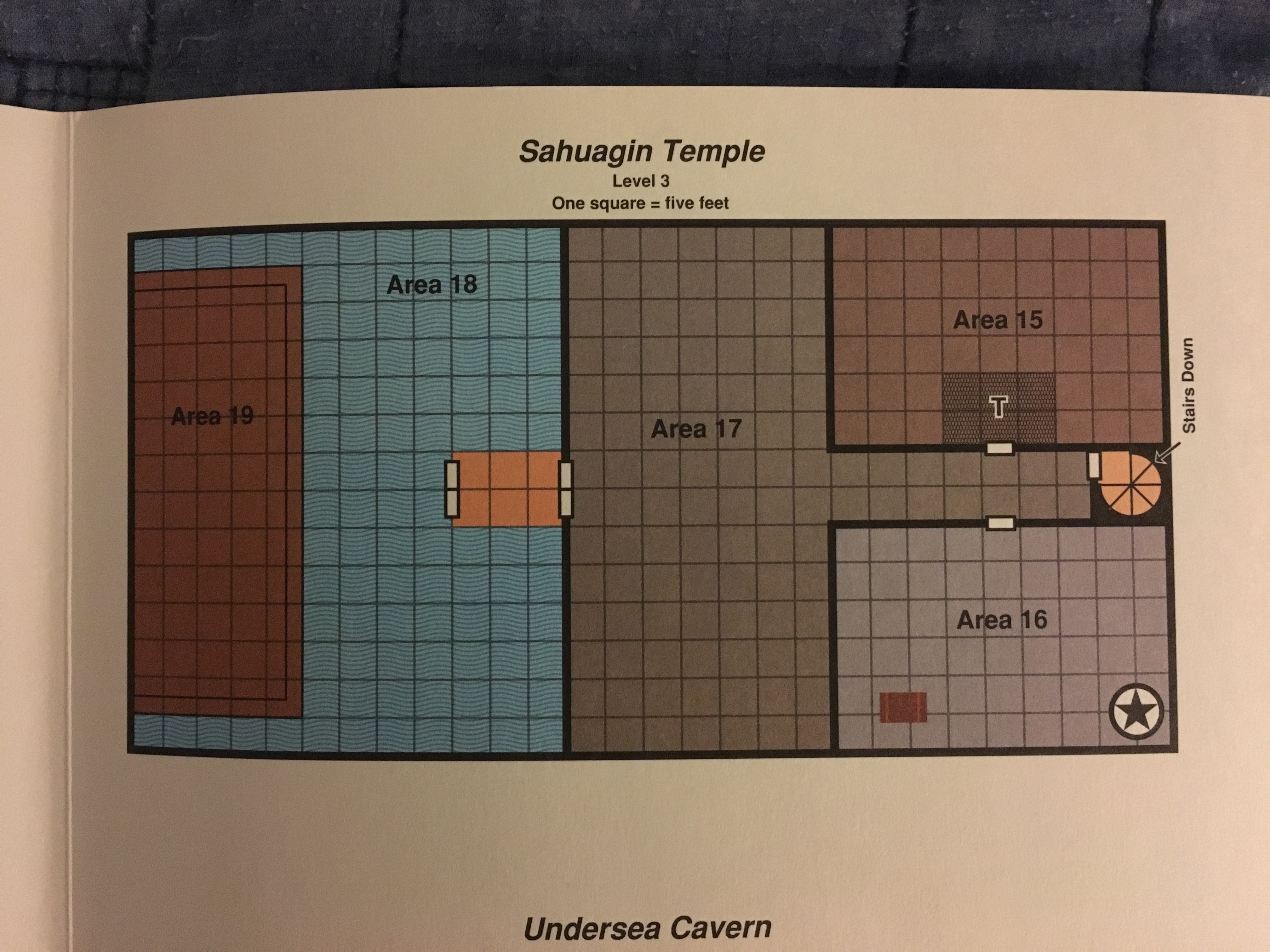 Though a full underwater adventure seems quite intriguing, IMHO the adventure itself doesn’t quite fulfill the promise. It is a rather straightforward dungeon crawl, and even the dungeon maps themselves are uninspiring.