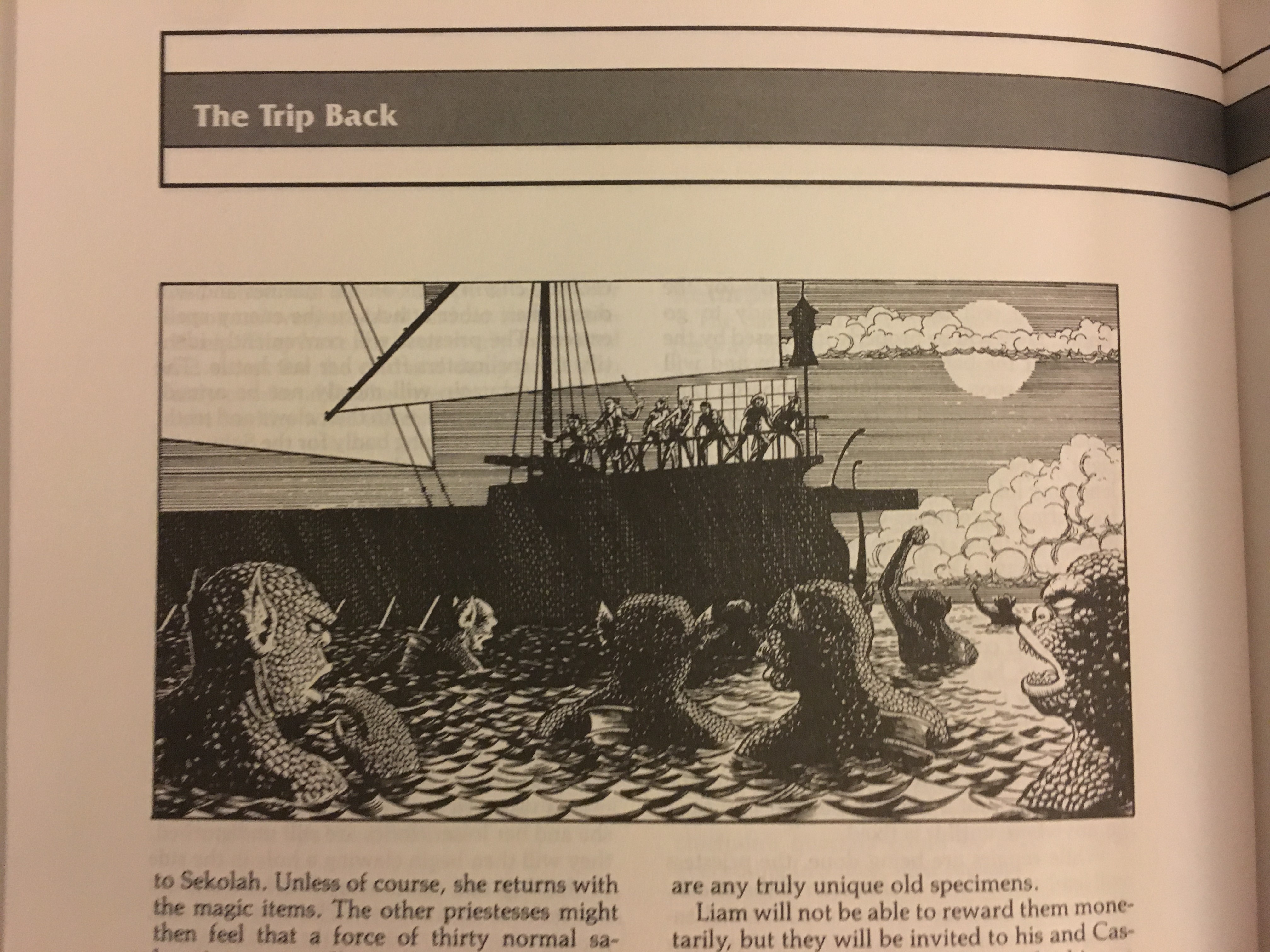 As one can see from the cover, this is all an opportunity to get the PCs involved in an underwater adventure, a pretty rare thing in D&D modules. The GA series seems to have focused on different biomes: GA1, ocean, GA2, swamp, GA3, forest.