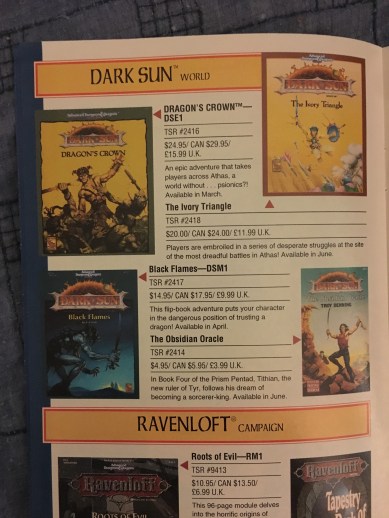 One can also see what products were being pushed hard in the catalog’s era. In this case, Dark Sun was pretty big. (And I need to talk about it in a future thread.)