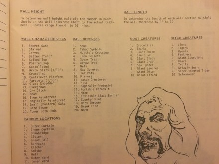 The Castle Book gives lots of rules. For instance, if you want to know how the walls are defended, there’s a table for generating that!