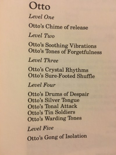 Even cooler are new spells, written by the great mages of Greyhawk! Unsurprisingly, the author of Otto’s Irresistible Dance has a lot of music-themed magics…