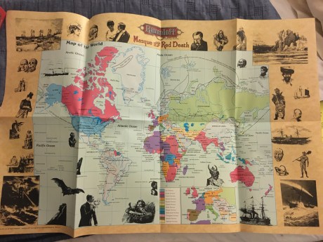 The box set includes lots of goodies to get players and Dungeon Masters up to speed. In addition to the map I showed earlier, there is a DM screen. The main book is “A Guide to Gothic Earth,” which gives the history and all the new rules.