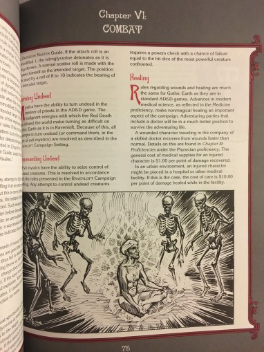Classes are modified, of course. Instead of fighters, you have “soldiers.” Instead of magic-users: “adepts.” Instead of clerics: “mystics.” And instead of thieves: “tradesmen.”  Fortunately, to compensate for weaker magic, PCs now have guns and explosives. And they are sufficiently deadly to make up for a lot.
