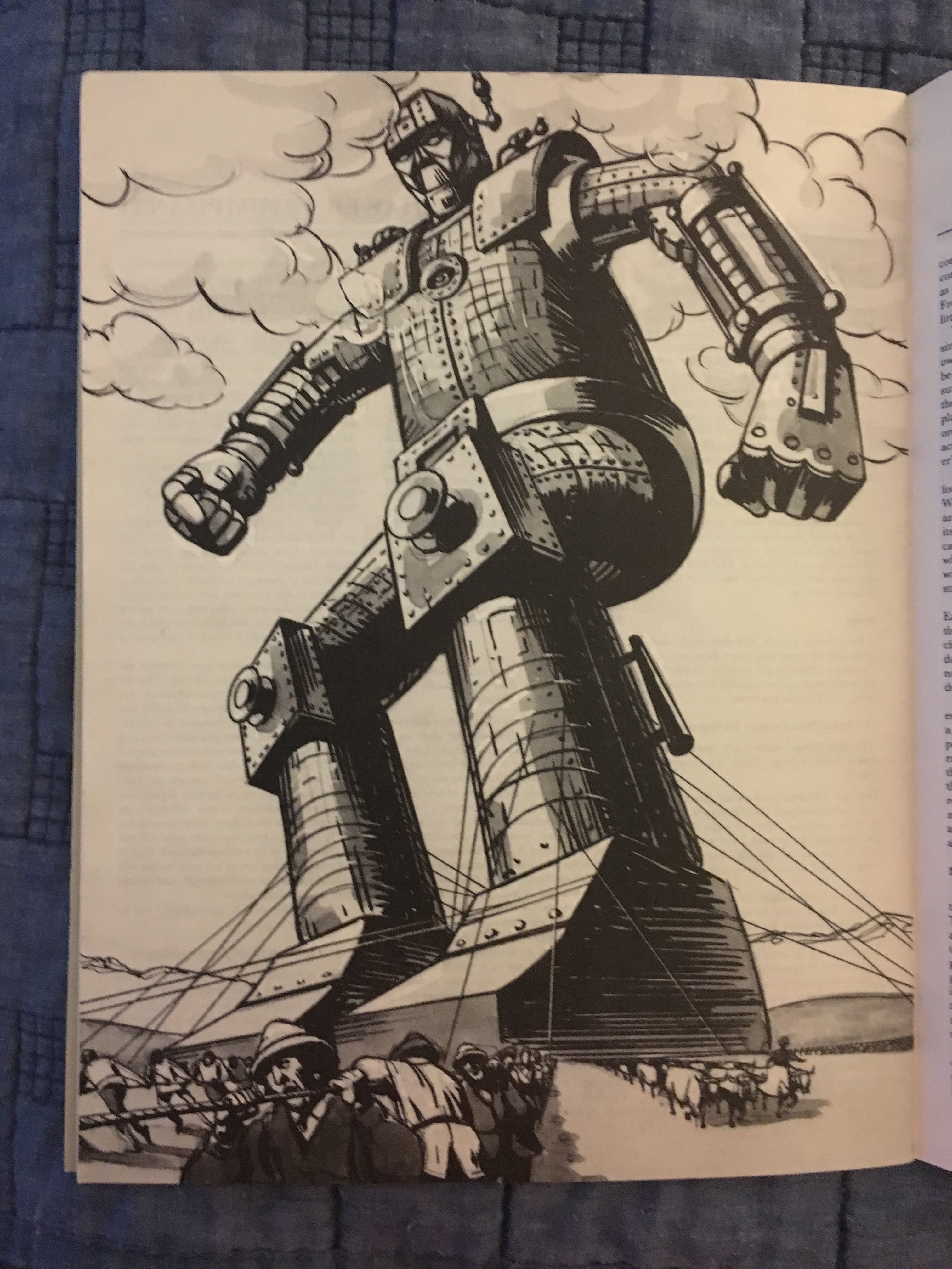 The module ends up, in essence, being a dungeon crawl inside of a gigantic, moving, mechanical man! The author spends quite some time giving the DM ideas on how to convey its massive size to the players.