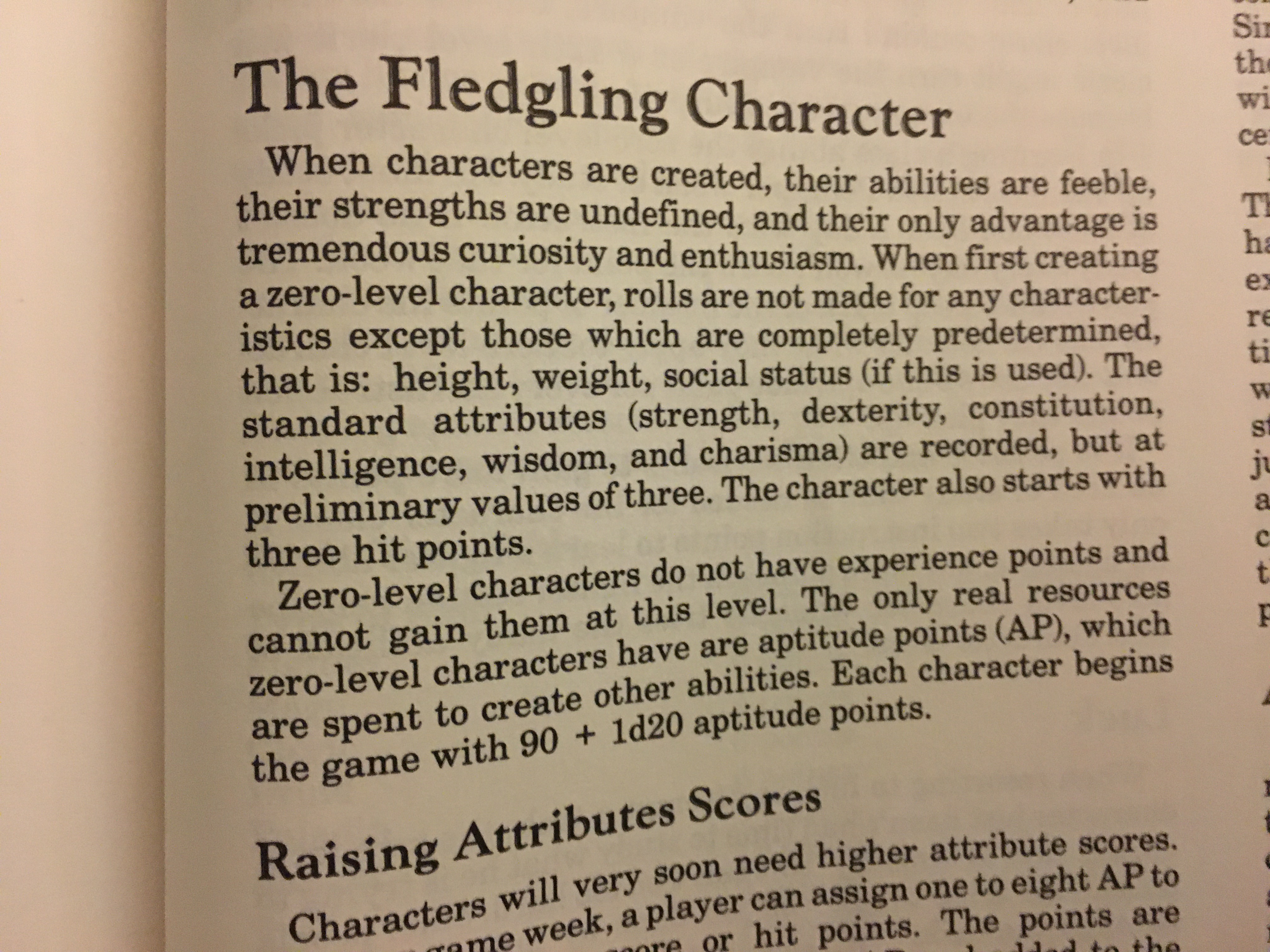 However, these zero-level rules seem rather artificial and clunky, compared with the more organic play of module N4: Treasure Hunt, published the year before. In Treasure Hunt, a PC has normal stats and develops a class based on their actions.