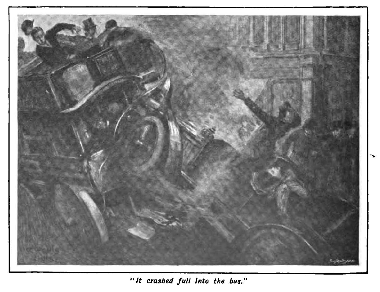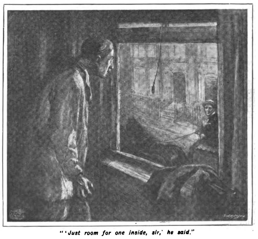 The Bus Conductor, E.F. Benson (1902), in The Pall Mall Magazine. Illustrations by A. Wallis Mills.  Perhaps one of the most famous classic ghost stories of all time!  A man encounters a terrifying specter of a hearse driver, beckoning to him. The vision is unsettling, but it portends something very real — and deadly — in the man’s future.