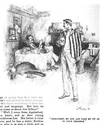 Abercrombie gets warned about his curious new Egyptologist neighbor. (His friend is borrowing some bones, because they’re both studying anatomy.)