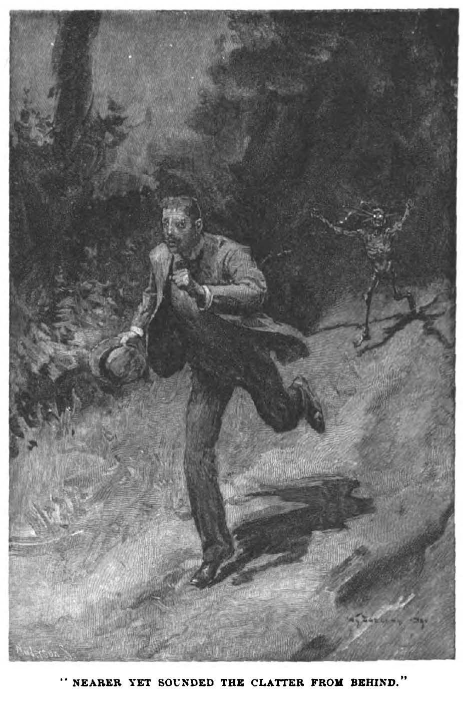 Lot No. 249, by Arthur Conan Doyle (1892), in Harper’s New Monthly Magazine. Illustrator uncredited (and I can’t read his signature).  When people are attacked by a mysterious being around the University of Oxford, Abercrombie Smith suspects his fellow student Edward Bellingham, a collector of Egyptian antiquities, is somehow involved. By Smith’s questioning soon turns him into a target…