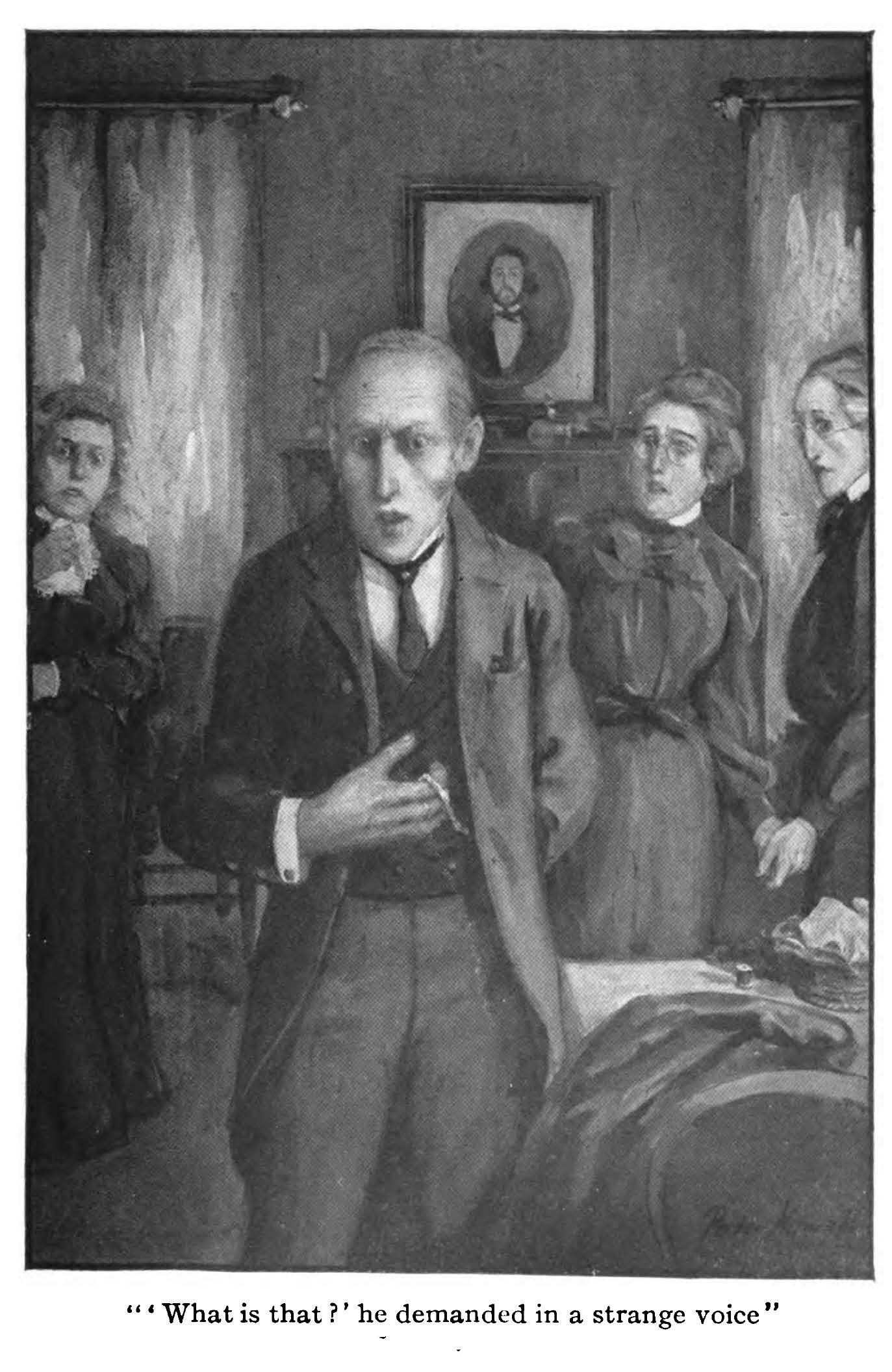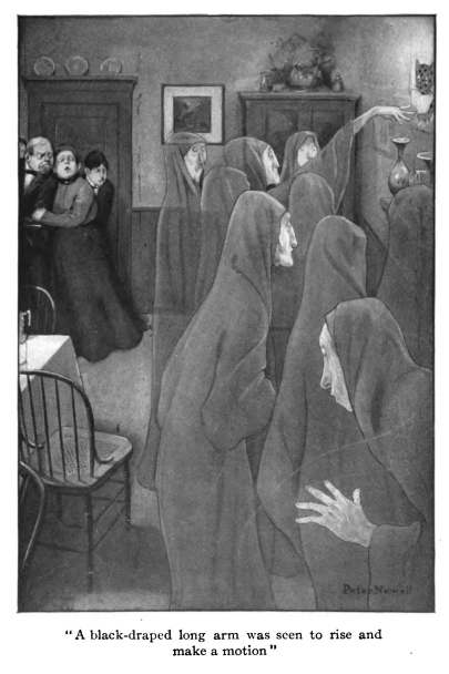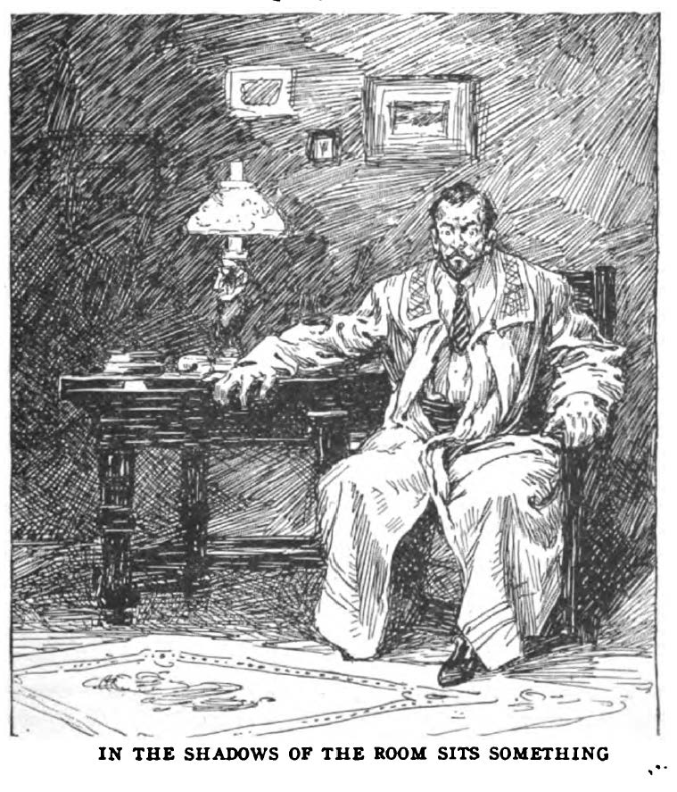 The Thing in the Hall, by E.F. Benson (1912),  in The New Broadway Magazine. Illustrated by Franklin Booth. When a brain researcher indulges in a study of spiritualism, he “throws open the door” to any supernatural being that chooses to come through. Unfortunately for him — and others — the thing that comes through is decidedly not friendly, nor human.