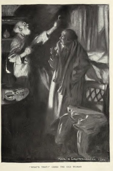 The climactic moment, when the old couple waits to see the outcome of their second wish, one with excitement, one with horror.