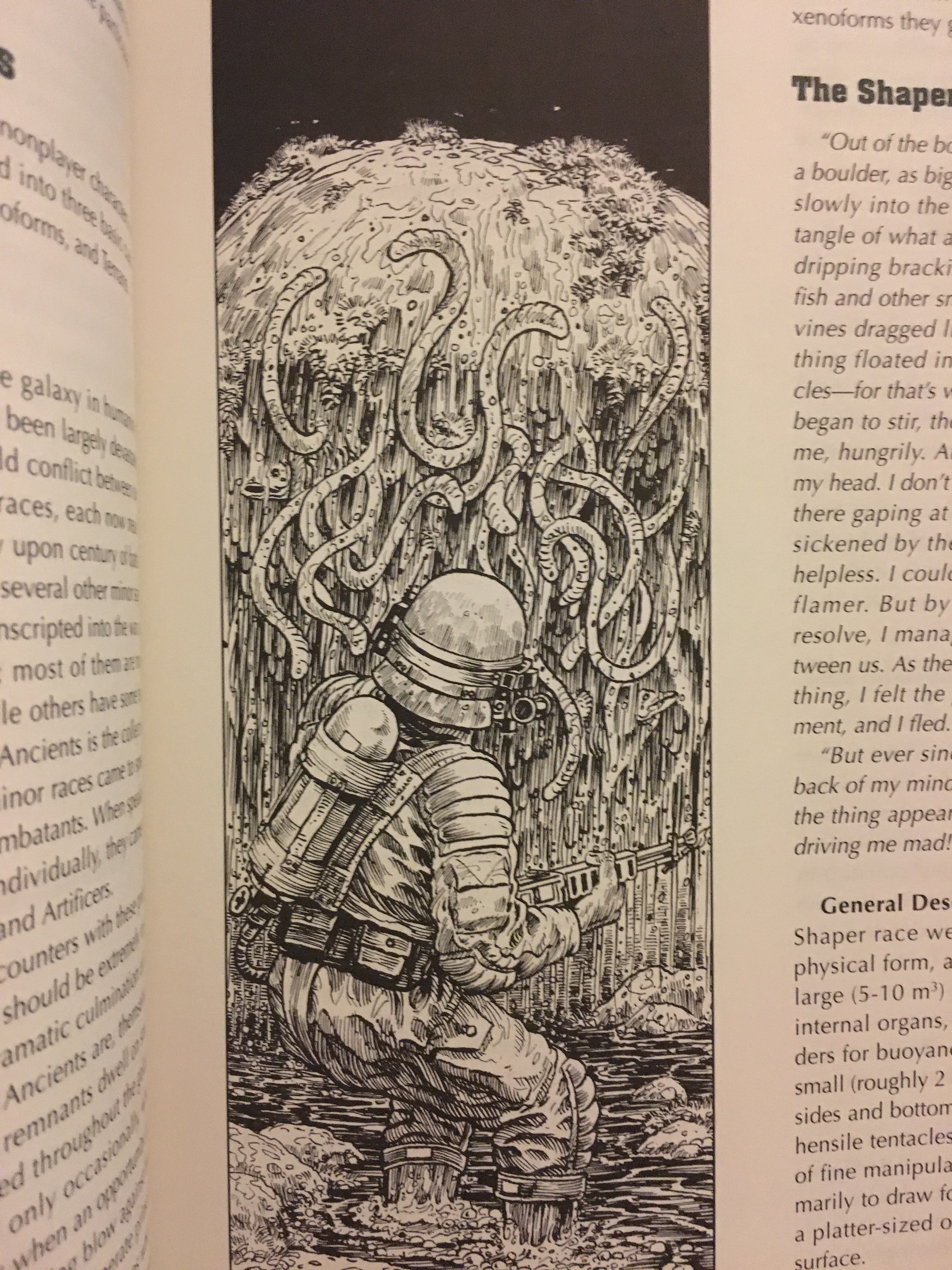 To be fair, they don’t all looks quite so silly. Below are the Shapers, the other major race, who look a lot more ominous.