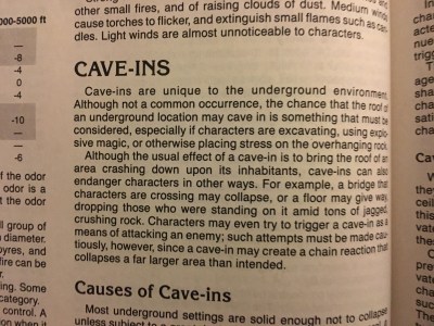 For players, the book begins with a lot of information on how natural caves form, what sights can be seen in them, and a bevy of natural dangers that can be encountered, from cave-ins to toxic gas.