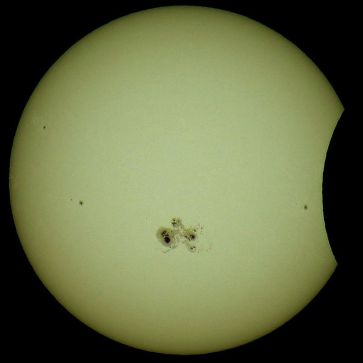 Sunspots visible during solar eclipse of October 23, 2014. By user Tomruen via Wikipedia.