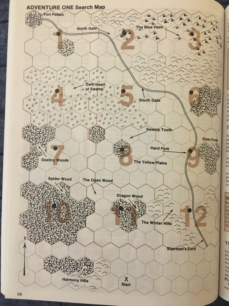 The adventures involve the characters traveling to the Dragonlands to prevent an all-out dragon-human war. The first part is a mini-boardgame, where the PCs must avoid enemy patrols to reach their destination. (I kinda want to try this idea in a game myself now.)