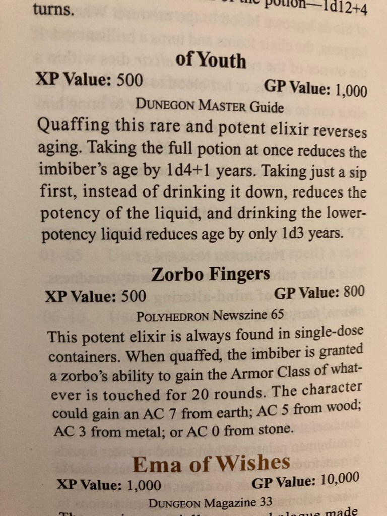 It is really wild how many items there are: the books even cover different versions of items that appeared over the years, like Dust of Sneezing. And those aren’t the only dusts — there are many, many dusts alone!