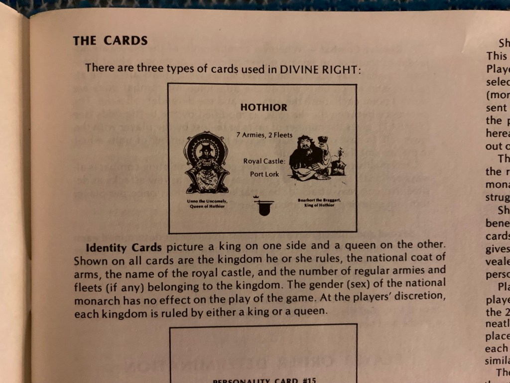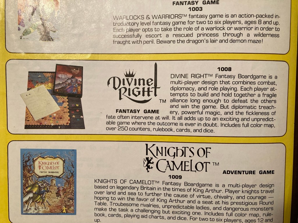 As the description says, Divine Right is a board game, not an RPG — though it contains clever diplomacy rules that make it feel somewhat like an RPG.