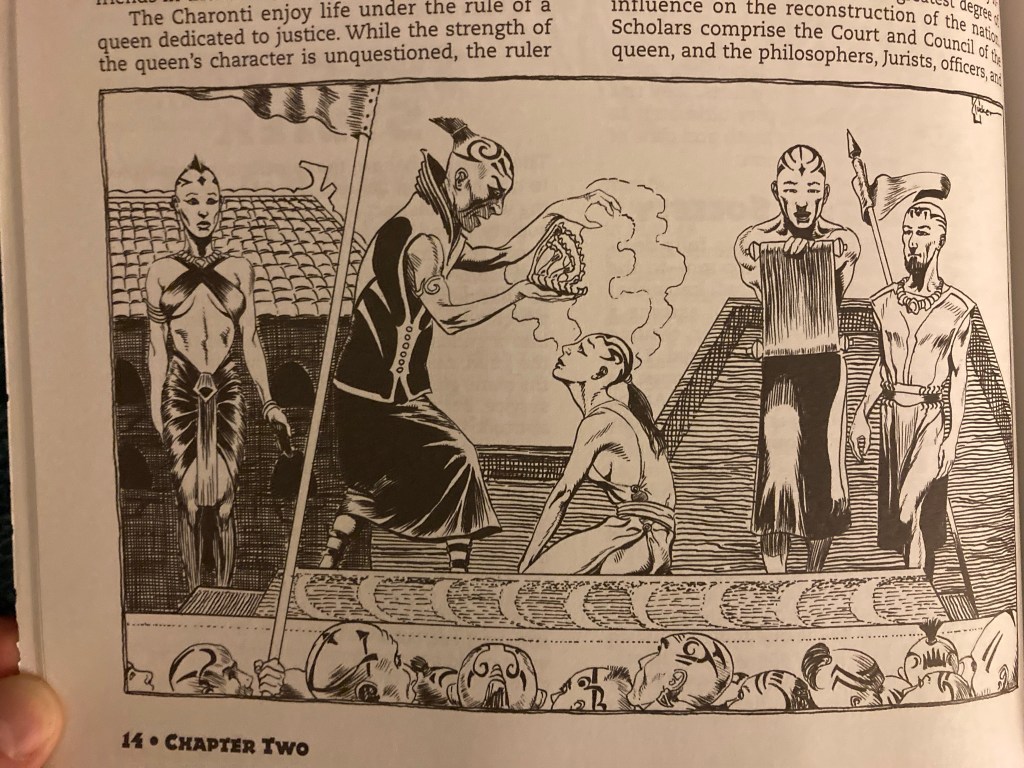 A week ago or so, I saw a TikTok where the user posed the game question: is necromancy ever good? The Charonti seem to be geared to answer this in the affirmative. Moreover, necromancy is portrayed as a natural extension of the idea of ancestor worship — why not keep their physical form going? This necromancy is a big part of the hostility between the Charonti and the Knorr. In fairness, it’s hard to make a good first impression if you’re walking around with an animated corpse.