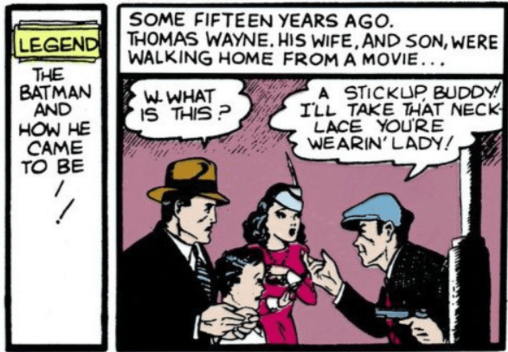Does this scene sound familiar? You might be thinking that a young Bruce Wayne should also be present, and that this is the origin story of Batman! But it is not; let’s continue: