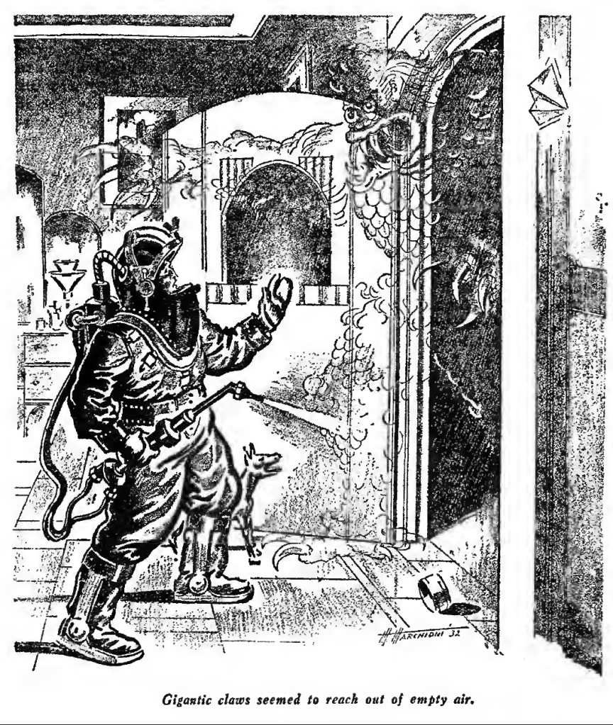 But returning to “Salvage in Space,” how is the invisibility explained in the story? Thad ponders the monster’s origins: