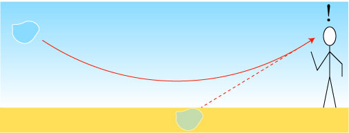 Repp, through Nathan, imagines a natural sort of invisibility cloak formed by the refraction of light. The effect would be very similar to an ordinary mirage, where the gradient of air density near the surface of the ground causes light to follow a curved path: