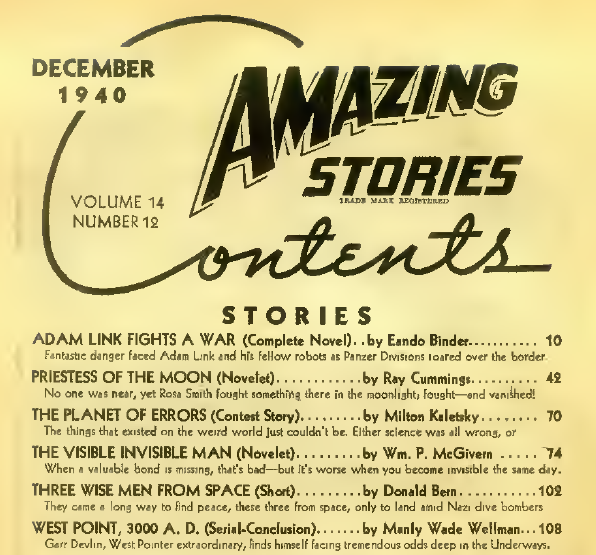 I may be cursed to blog about invisibility in fiction for the rest of my life. While preparing a post about McGivern’s “The Visible Invisible Man,” I suddenly realized that there is another story about invisibility in the very same issue of Amazing Stories!