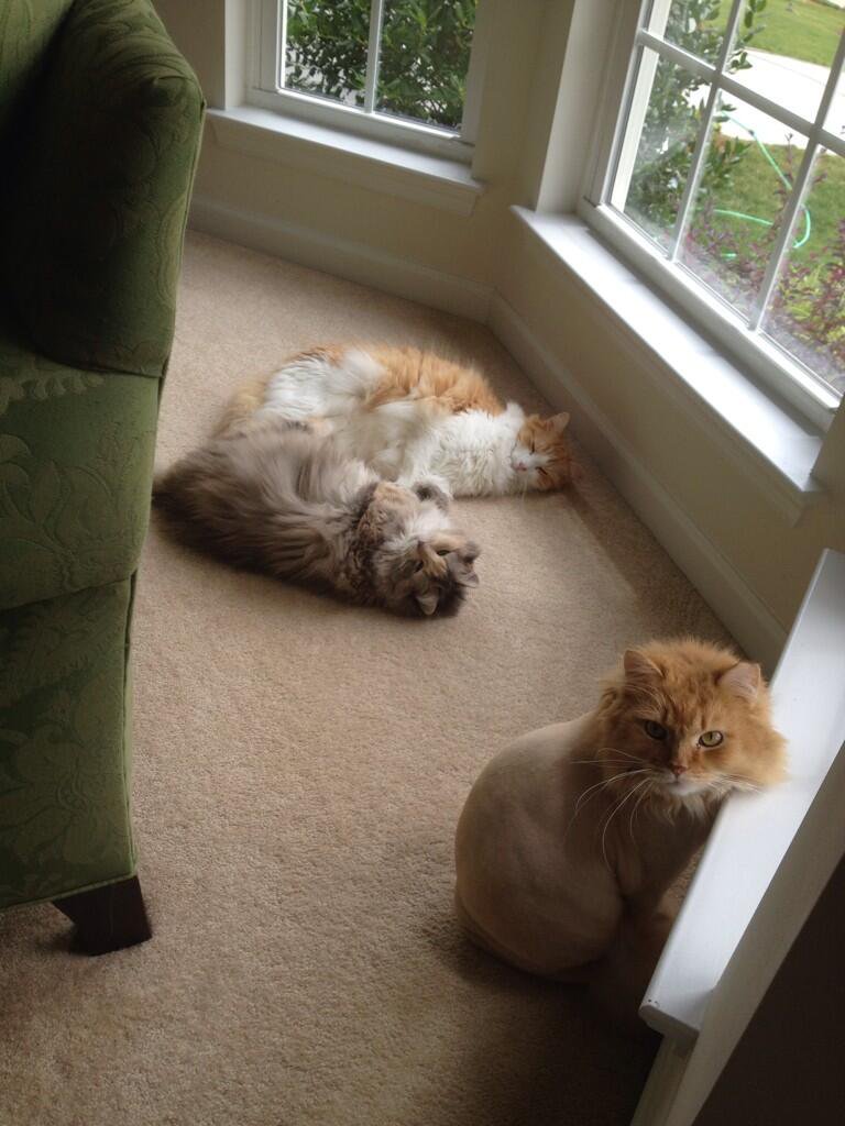But their family was even bigger, as they themselves adopted our young adopted kitten Fluff, and acted as parents to him. They even looked the part, and Fluff could have been their biological baby from all appearances and behaviors.