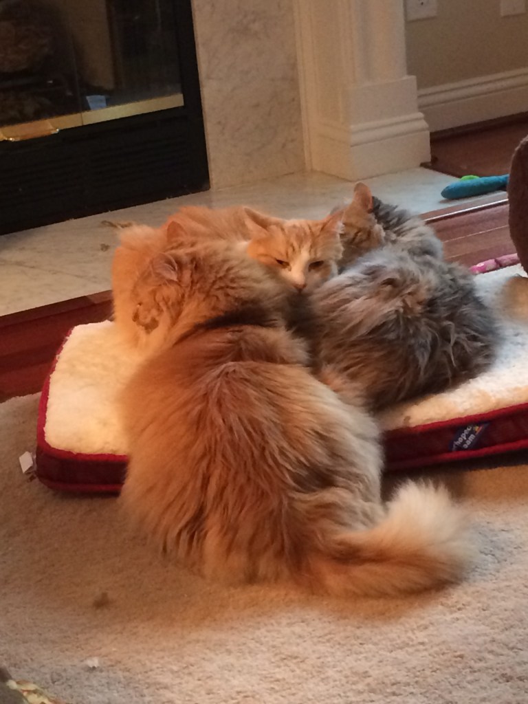 Fluff sadly passed away, much too young, in 2018. But Sasha and Mandarin remained a couple throughout the rest of Mandarin’s life.