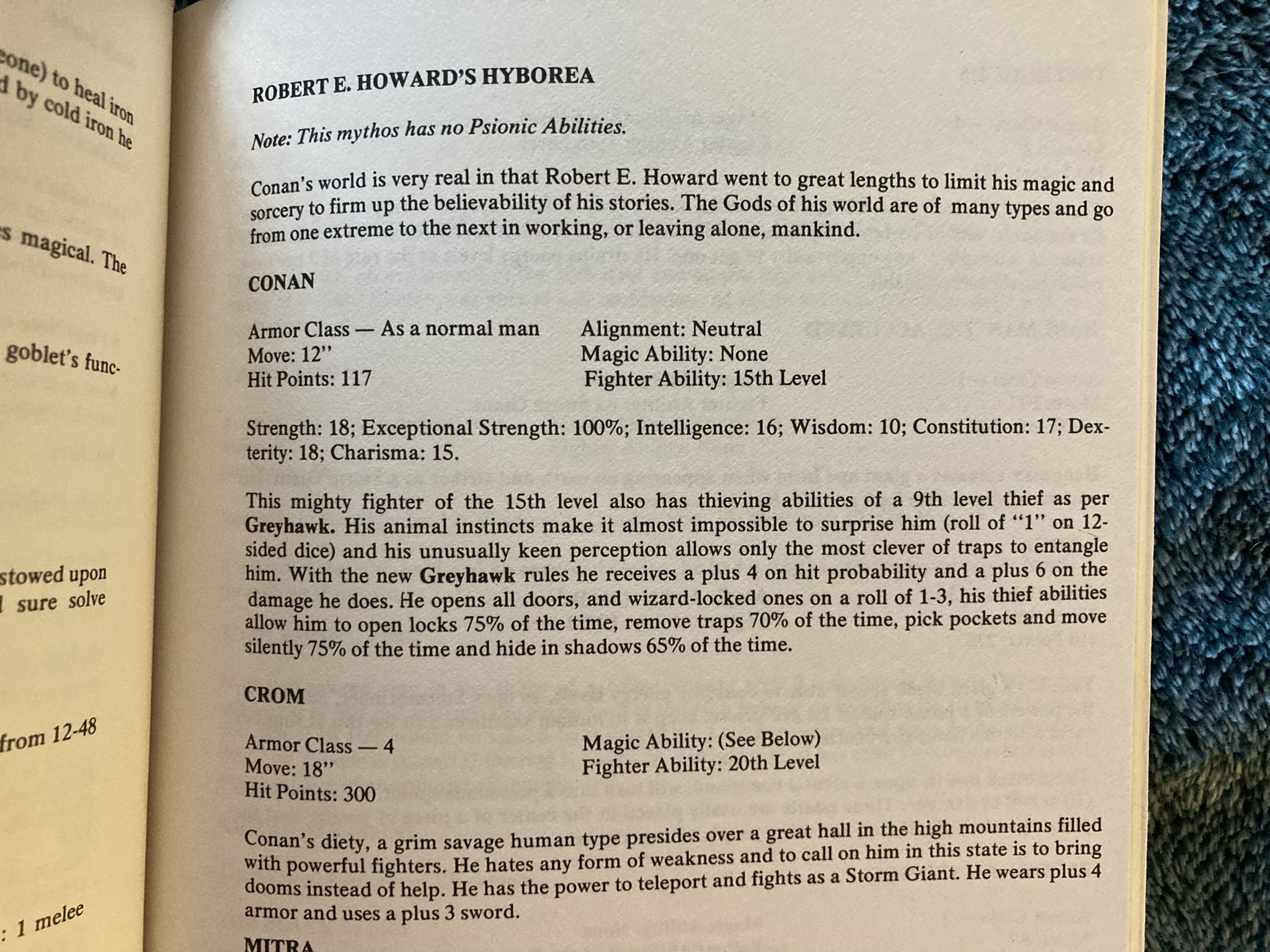 This book possessed something that the later Deities and Demigods would not: the gods and lore of Robert E. Howard’s Hyborea, including Conan!