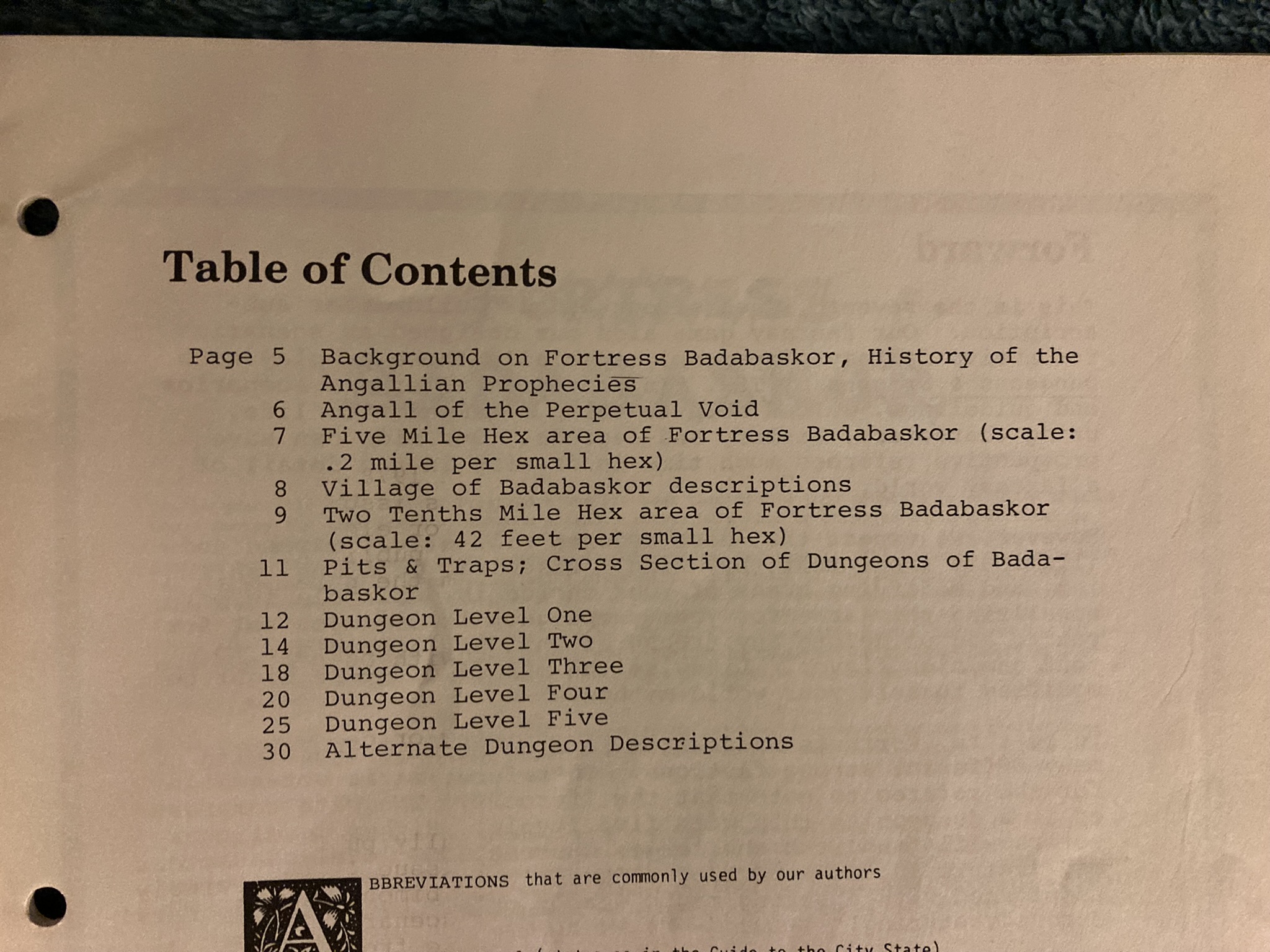 Badabaskor is one of Judges Guild’s most famous products: it is a classic multi-level dungeon crawl, including the history of the fortress and the village within it.