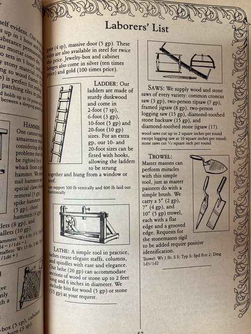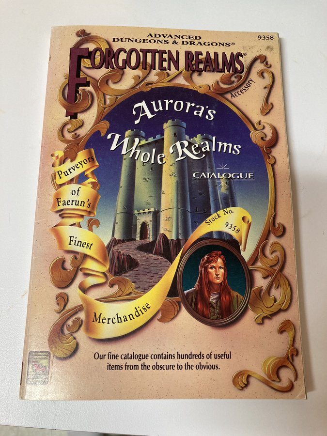 The catalogue became a permanent feature of that game, and Anne pitched the idea of a D&D equivalent! Whole Realms is written like an old catalogue, entirely in character, with almost every imaginable mundane item, from tools to raw materials to food.