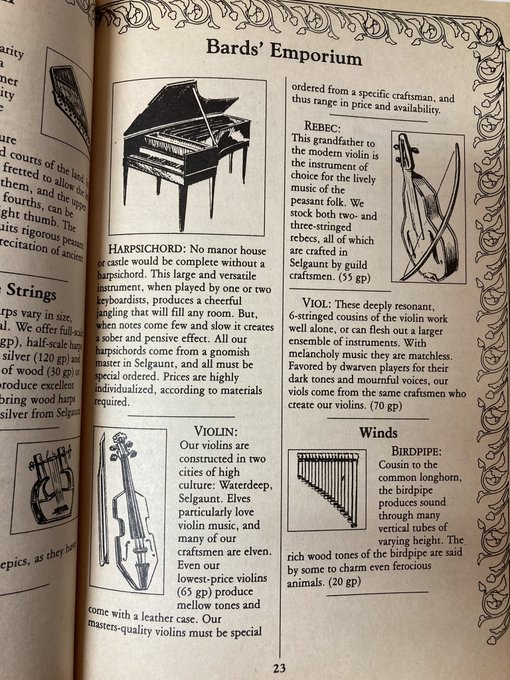Bards have a plethora of musical instruments and performance tools to choose from.