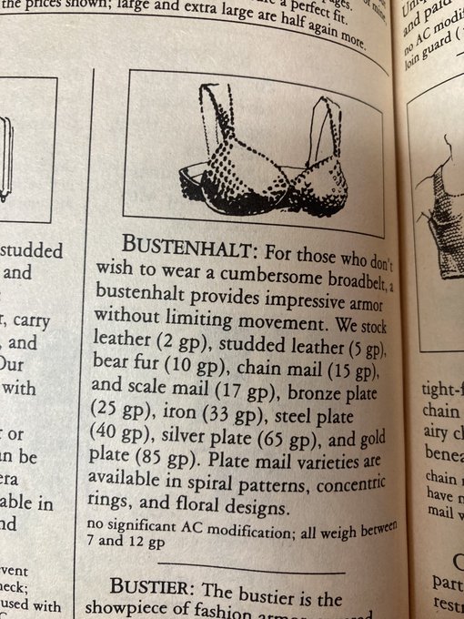 Clothing is available- both normal items and items from “Boom’s Garden,” which is implied to be more or less a fantasy lingerie store. They have a bit of a joke here about the uber-prevalent at the time chainmail bikinis, which provide NO protection.