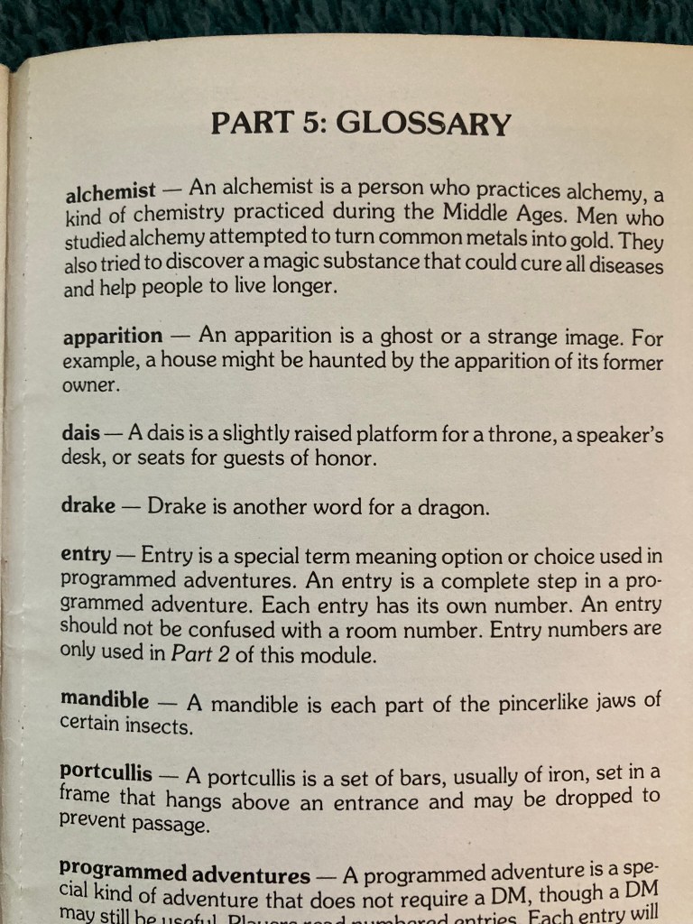 The adventure also includes a GLOSSARY. Clearly it was designed to introduce true novices to the fun of Dungeons & Dragons! It is a really charming and fun ride.